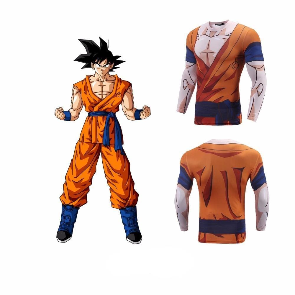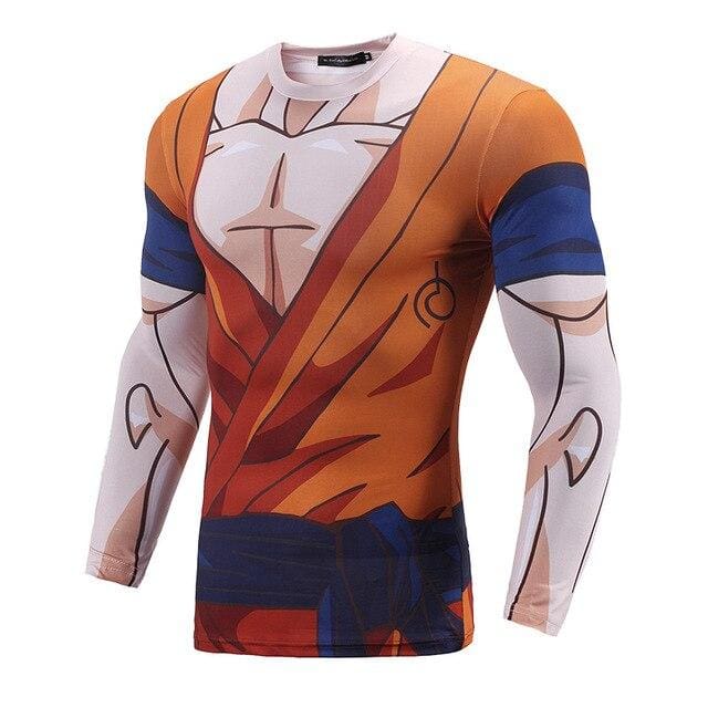 Adoptez un look de saiyan ultime à la salle avec ce T-Shirt de Compression Longue recréant la tenue de Goku tirée de Dragon Ball Super !