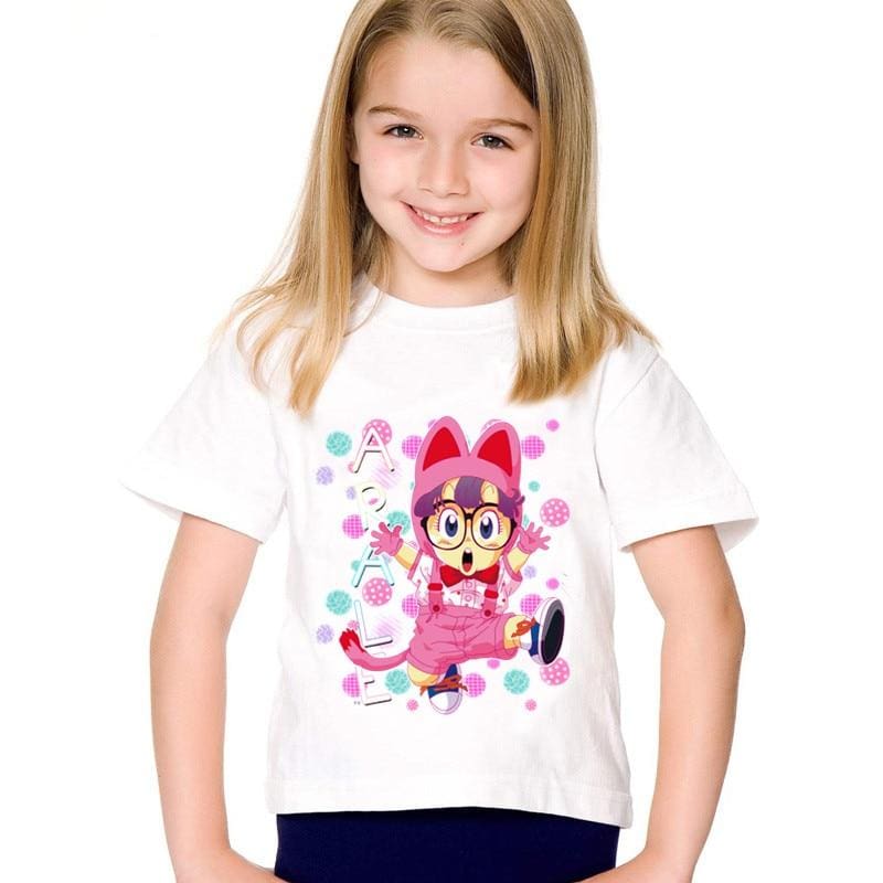 Arale est charmante et donne l’air d’une enfant ordinaire. Elle portait le t-shirt Dragon Ball Arale avant de changer de tenue !