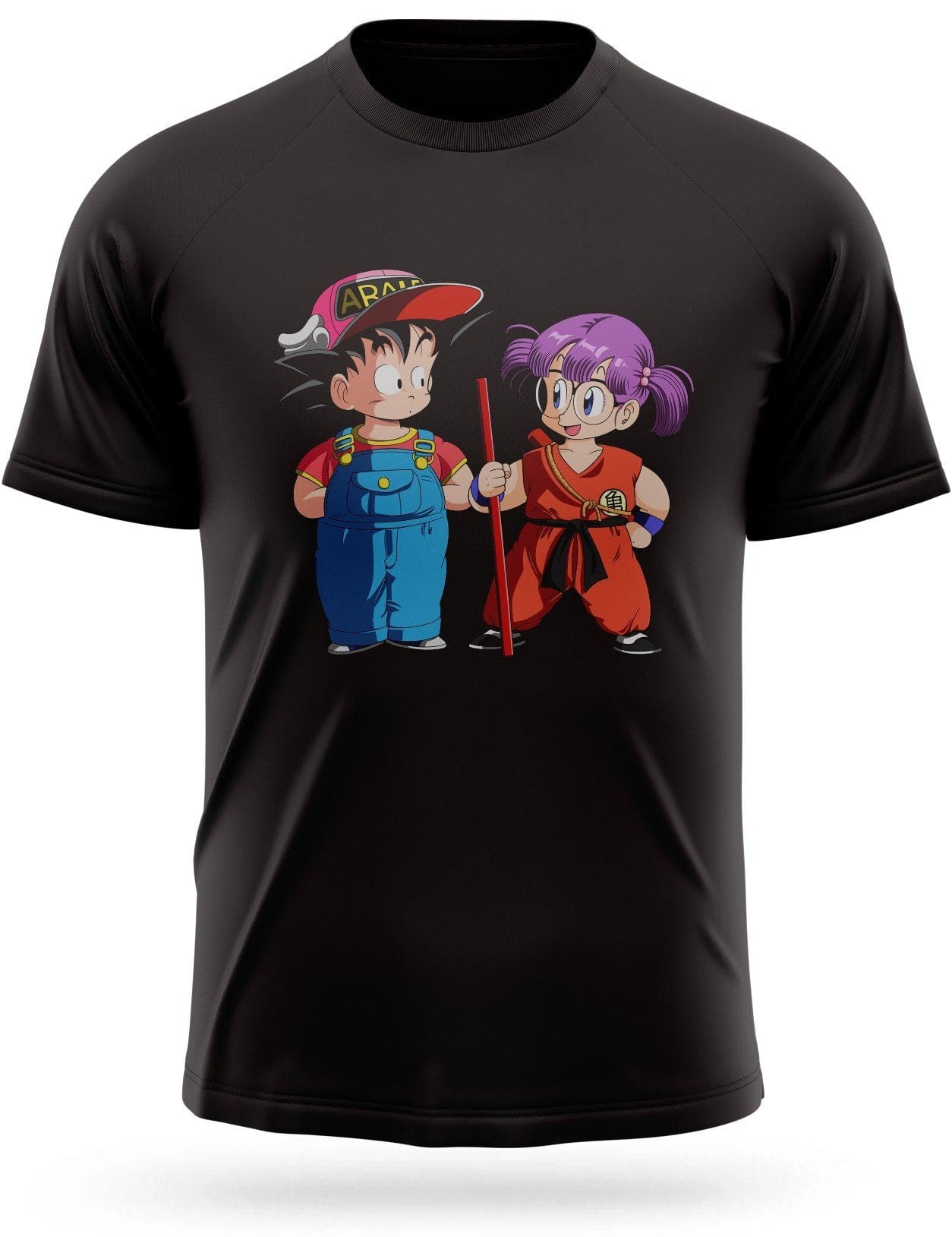 Ne vous fiez pas seulement à son apparence, Arale possède un talent unique jamais vu auparavant ! Certaines rumeurs disent qu’elle pourrait même rivaliser avec Goku. Heureusement, ils sont bons amis sur ce t-shirt Arale !