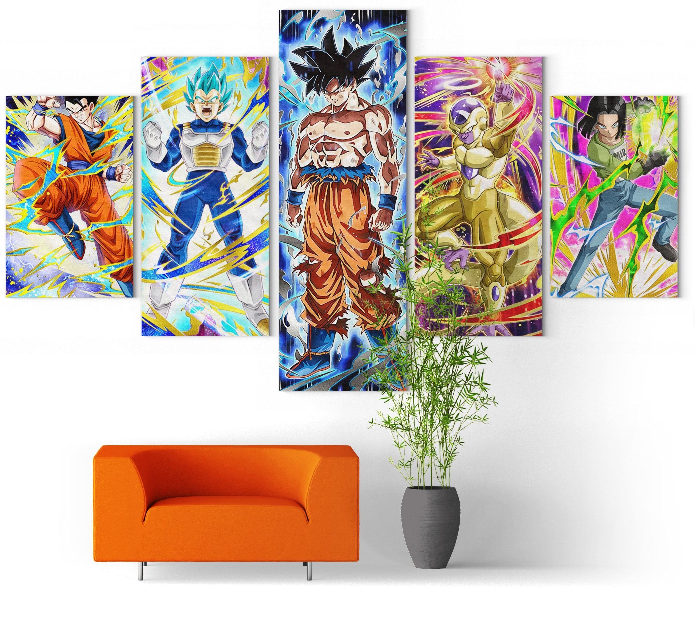 Exprimez votre caractère grâce à ce Tableau de teintes éclatantes. La Toile Canvas capture les Figures emblématiques de L’univers 7, issues de la série Dragon Ball Super.