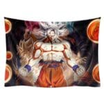 Profitez de ce magnifique tapis Dragon Ball avec Goku en mode Ultra Instinct ! Idéal à accrocher au mur ou à placer sur toute surface, quelle que soit la position désirée.
