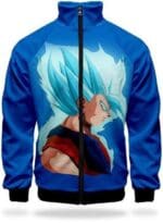Optez pour le style sportif avec cette veste DBZ arborant le Super Saiyan Blue de Goku !